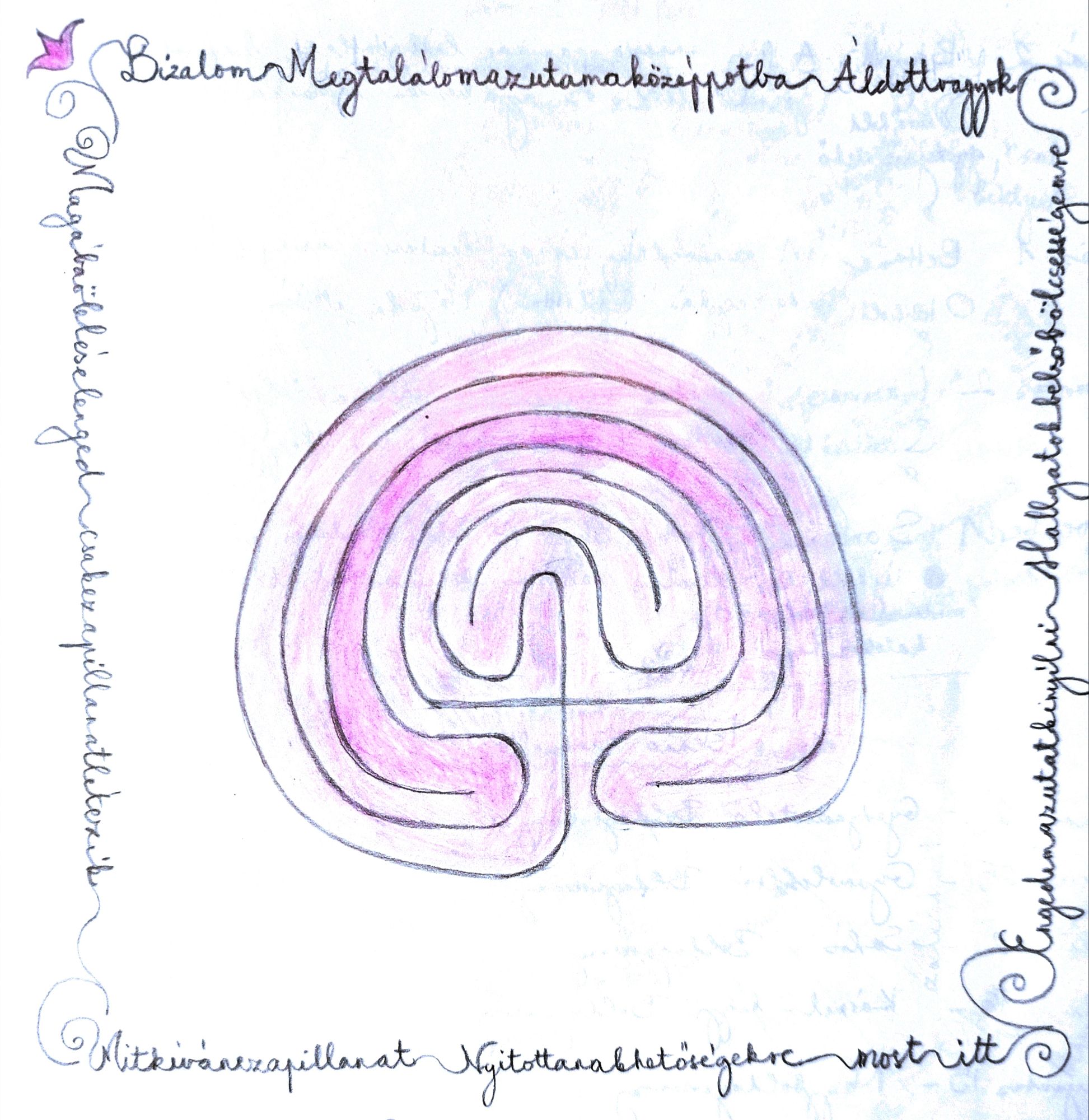 Most arra ébredt bennem a vágy, hogy felfrissítsem a méh mandala rajzom amit abban az évben készítettem, amikor a kislányom vártam. Ehhez hasonló labirintus, illetve kép elkészítésében segítek nektek a Program során. Lehet belőle inspirációs oldal a naplódban megtámogatva a Méh-terét számodra fontos üzenetekkel illetve pozitív megerősítésekkel vagy készítheted képként és a szentélyedre teheted