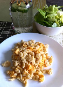 II. A vizet és a lúgot kimérem. Mikor a lúggal dolgozom, mindig használok gumikesztyűt, és vigyázok a szememre is – biciklisszemüvegben dolgozom – valamint a szám és az orrom elé egy kendőt kötök 🙂 A lúgot egy kis műanyagedényben mérem ki amit csak erre használok! Mikor kész vagyok vegyítem a vizet a lúggal. FIGYELEM! MINDIG A VÍZHEZ ADD A LÚGOT ÉS NEM FORDÍTVA! Lassan szórom bele a lúgot a vízbe, mindig megvárom, hogy feloldódjon. Egy nagy rozsdamentes acél edényben dolgozom. Ez is fontos, mert a létrejött kémiai reakció a lúg és a víz között hőt termel.* Továbbá én a fürdőszoba zuhanyzójában ügyködök, ha netán kifutna illetve nálunk itt van olyan nagy ablak amit mindig szélesre tárva tartok ilyenkor.