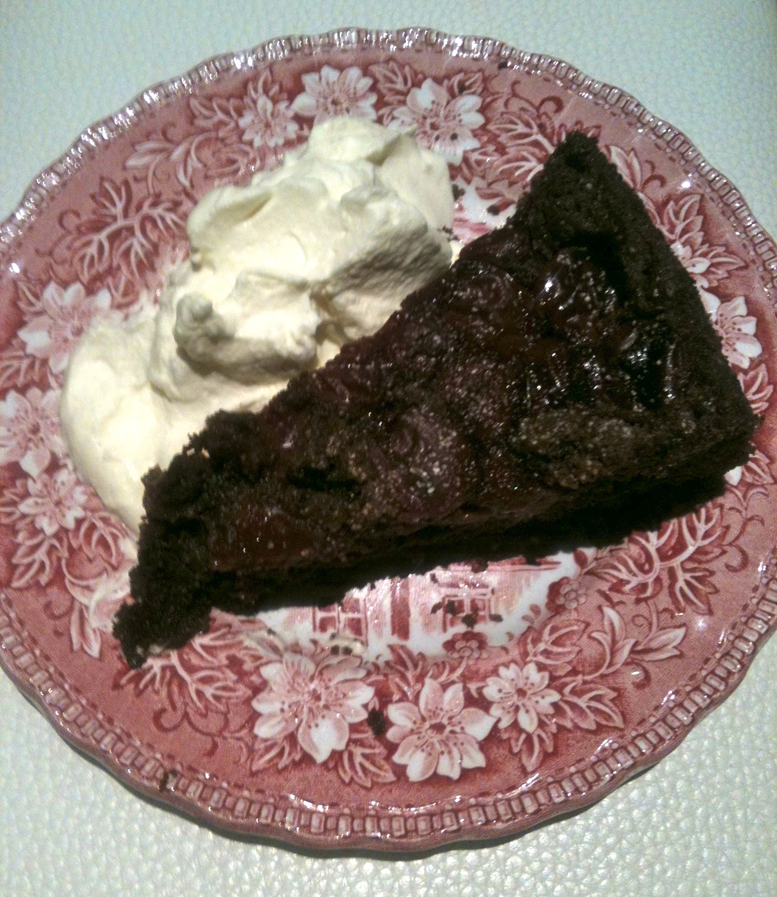 First mix the dry ingredients. Then add the oil, egg, syrup and yogurt, last the crushed walnut and chocolate.
