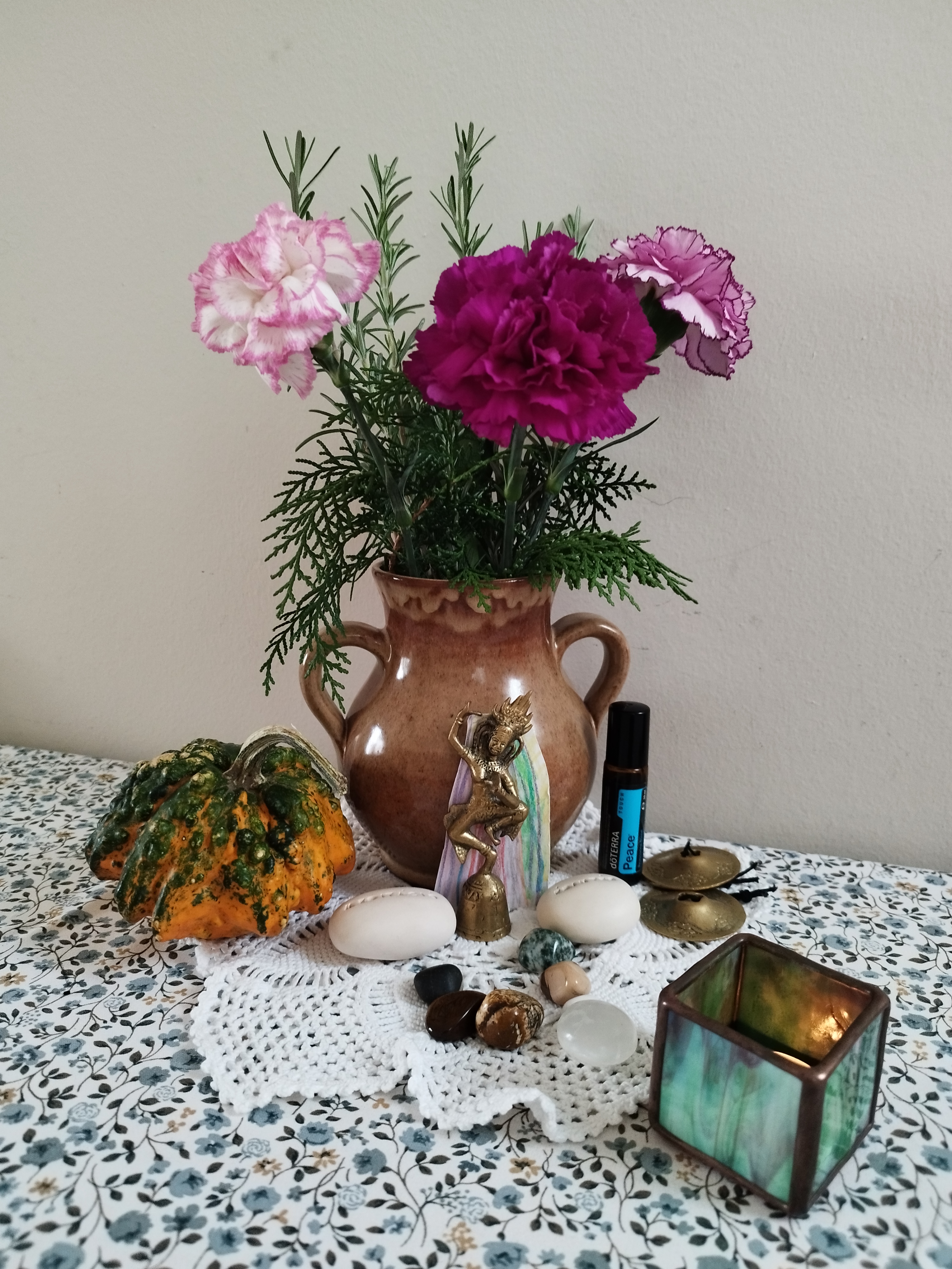 Ne feledkezz meg gondozni és használd az évszak asztalod/kis szentélyed! Tegyél rá friss virágot, gyújts gyertyát! Használj féldrága köveket és egyéb számodra jelentőségteljes tárgyakat rajta.