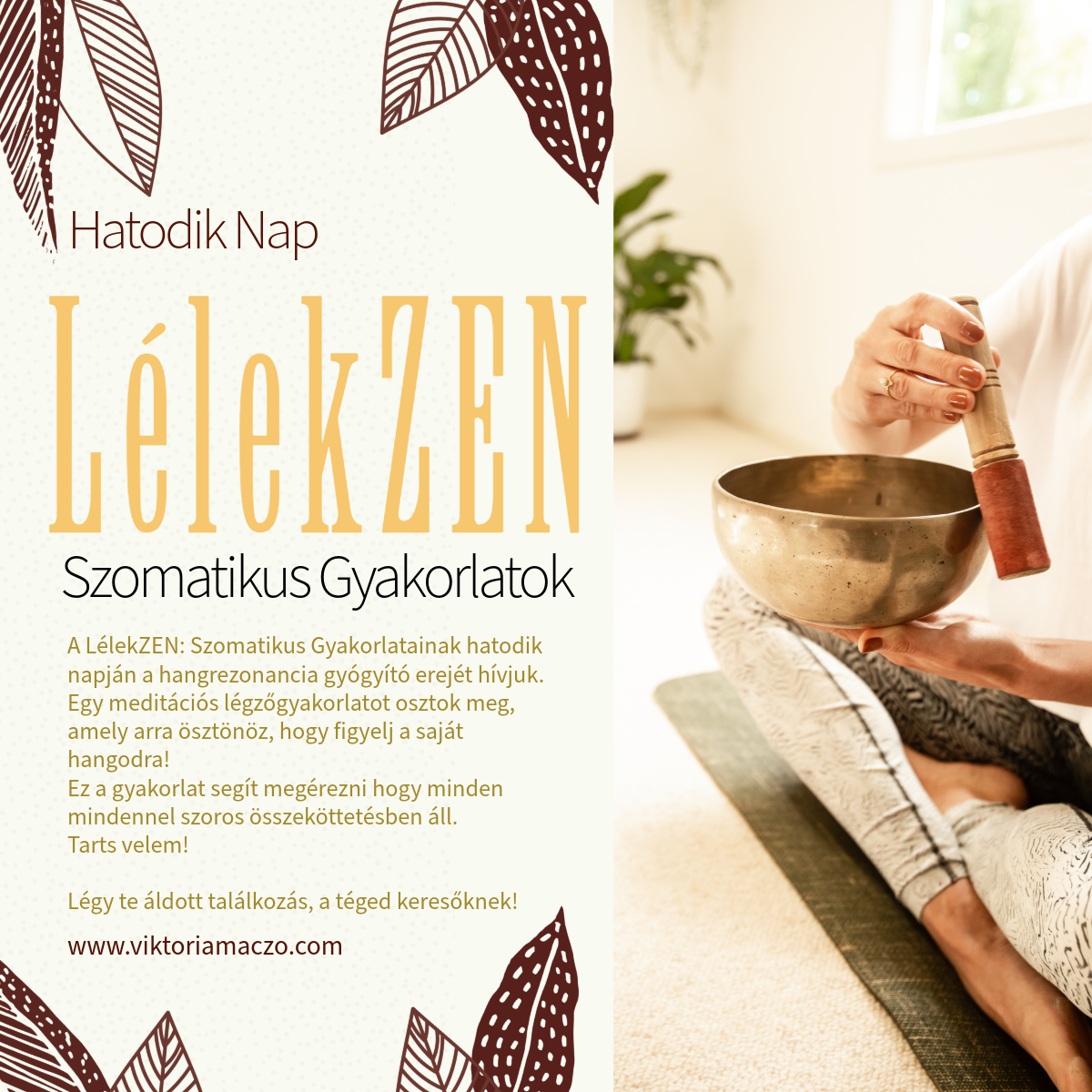 Ha érzed a hívást, tarts velem! Ha kérdéseid vannak üzenj (viktoria.yogatherapy@gmail.com), illetve jelentkezz a fél órás ingyenes hívásra, amiben megnézzük, hogy valóban illik-e hozzád mindaz amit a LélekZEN programban ajánlok!